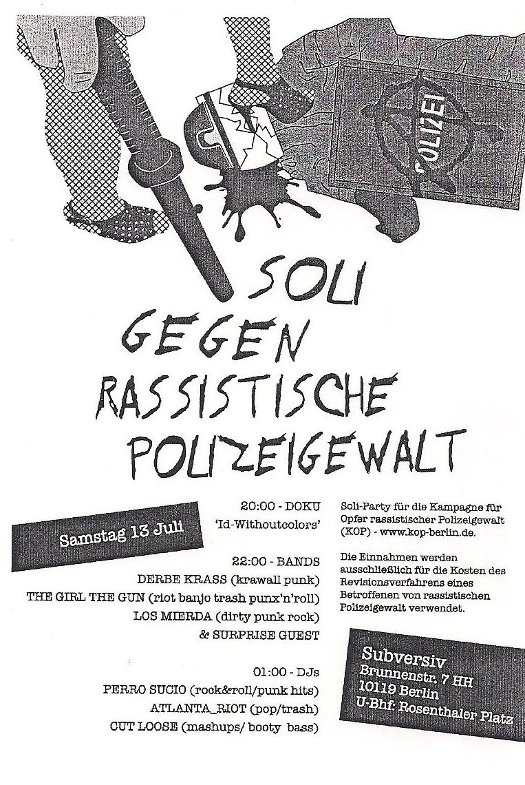 Soliparty für die Kampagne für Opfer rassistischer Polizeigewalt (KOP)