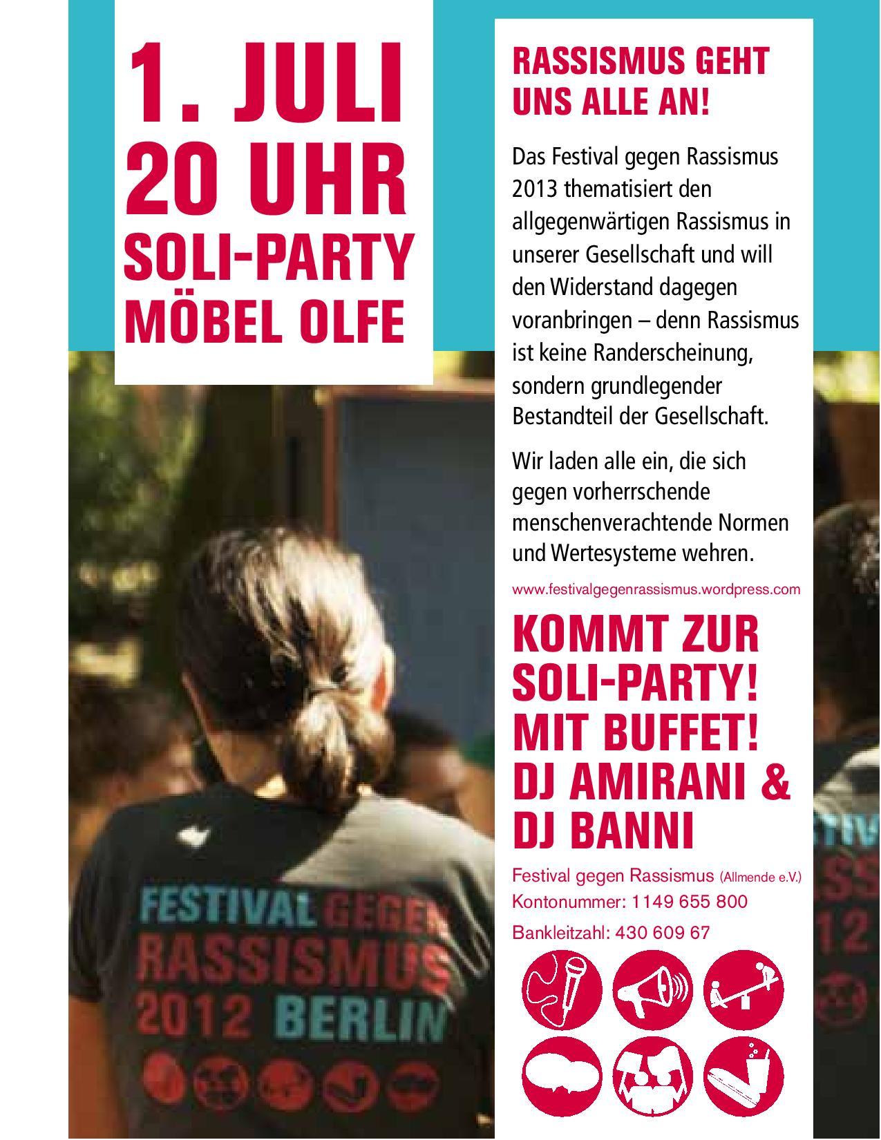 Das Festival gegen Rassismus 2013 thematisiert den allgegenwärtigen Rassismus in unserer Gesellschaft und will den Widerstand dagegen voranbringen – denn Rassismus ist keine Randerscheinung, sondern grundlegender Bestandteil der Gesellschaft. Wir laden alle ein, die sich gegen vorherrschende menschenverachtende Normen und Wertesysteme wehren.